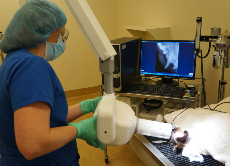 X-Rays are frequently a component of a diagnostic plan, and are very useful in determining the underlying cause of illness. The advantages of digital radiography include higher quality images, decreased radiation exposure for your cat and our staff, decreased wait time for obtaining images, decreased environmental impact (no film or processing chemicals to dispose of), and the ability to transmit images to a board certified radiologist if a second opinion is indicated.
